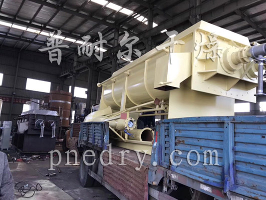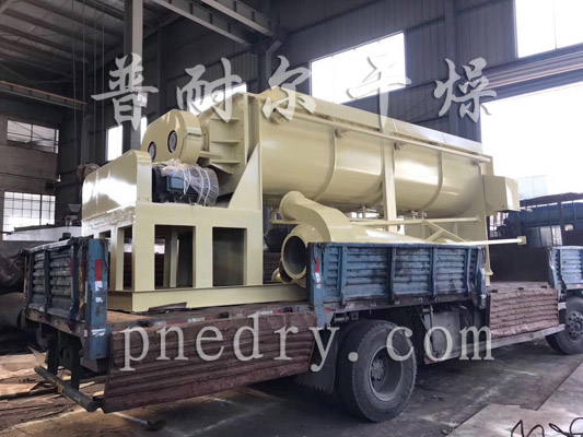 在槳葉及夾套通入熱介質加熱的同時,出料口上部同時進行抽濕,這樣大大增加了設備的干燥強度。蒸發(fā)出來的水份由抽濕風機帶出干燥機。