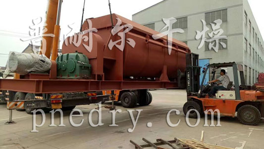 干燥機主要的傳熱部件是楔形的槳葉,槳葉密集的、按照規(guī)定的間隔交叉排列在固定的旋轉(zhuǎn)軸上,因此單位體積設(shè)備的傳熱面大,設(shè)備結(jié)構(gòu)緊湊,占地面積小。