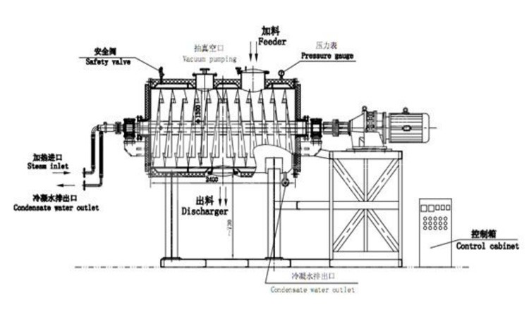 槳葉干燥機及耙式真空干燥機的熱傳導干燥原理,在耙式干燥機的基礎上研發(fā)出來的干燥速率更高,適合多種物料的新型干燥設備。內置的槳葉及螺帶以連續(xù)方式攪拌被干燥物料,