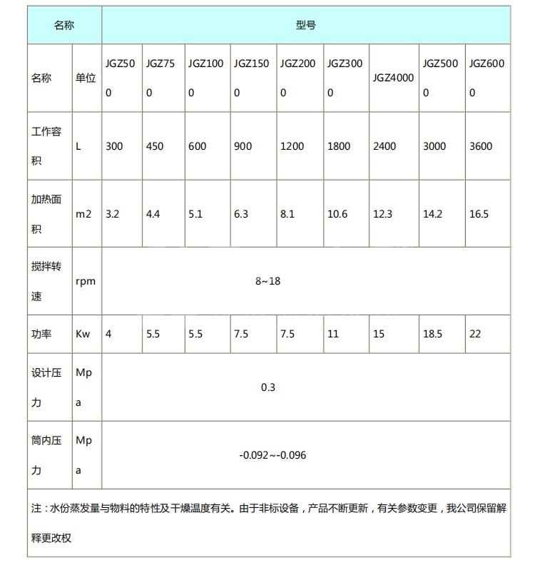 JGZ槳葉耙式真空干燥機泥漿狀真空臥式工作原理